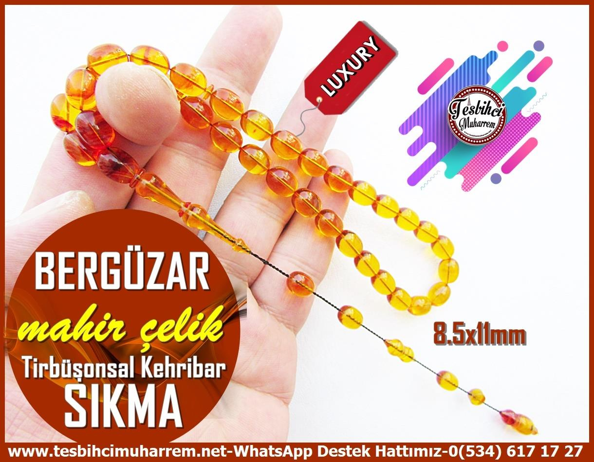 Tespih Lüks Sıkma Kehribar I Beyzi Kesim Damarlı Tirbüşonsal Bergüzar Tesbih (TM13366/A)